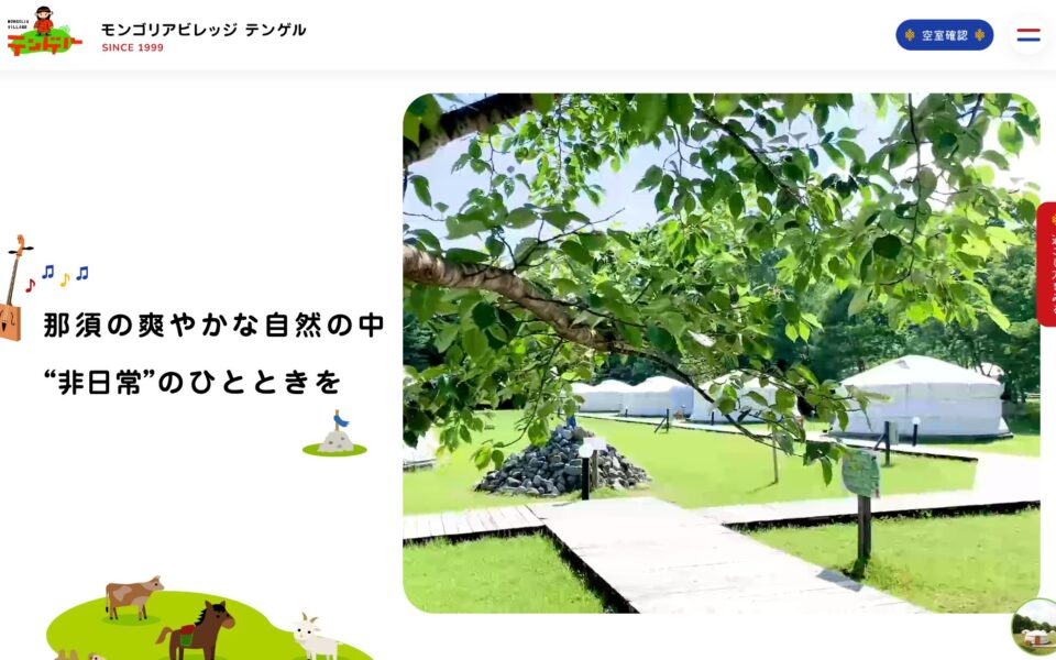 那須でモンゴルの異国文化の体験や本場のゲルに宿泊できる上、温泉や自然という那須の良いところも楽しめて、友人同士のグループ旅行や学生さんの合宿利用、小さいお子様連れのファミリーまで幅広い層に人気の宿泊施設テンゲル様の魅力をたっぷり感じてもらえるように!とWebサイトリニューアルがスタートされました。