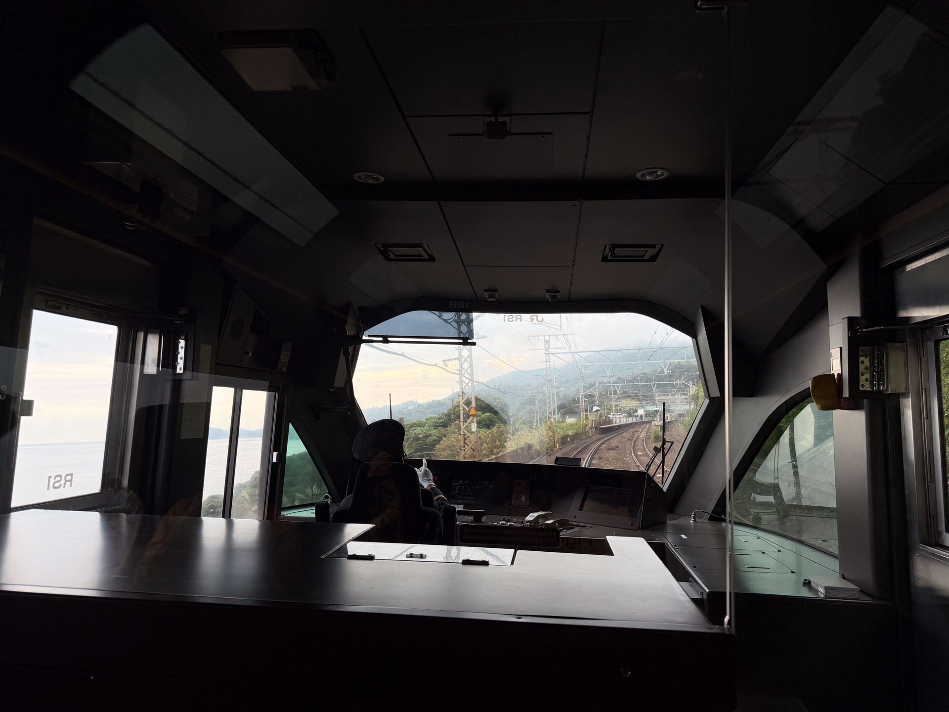 運転席越しに前方の線路が見える、全面展望の特等席。
