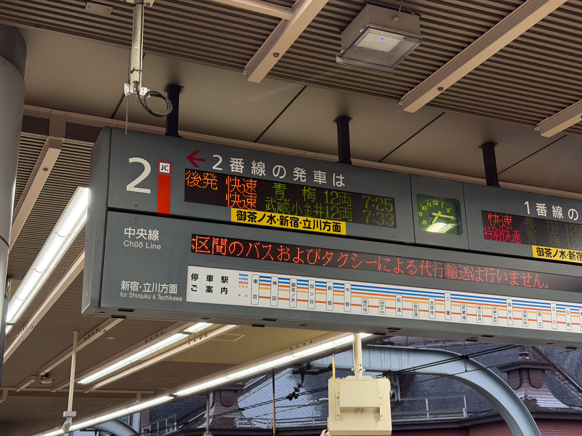 朝の東京駅を7時25分に出発し、四ツ谷・新宿・吉祥寺と抜けていく。