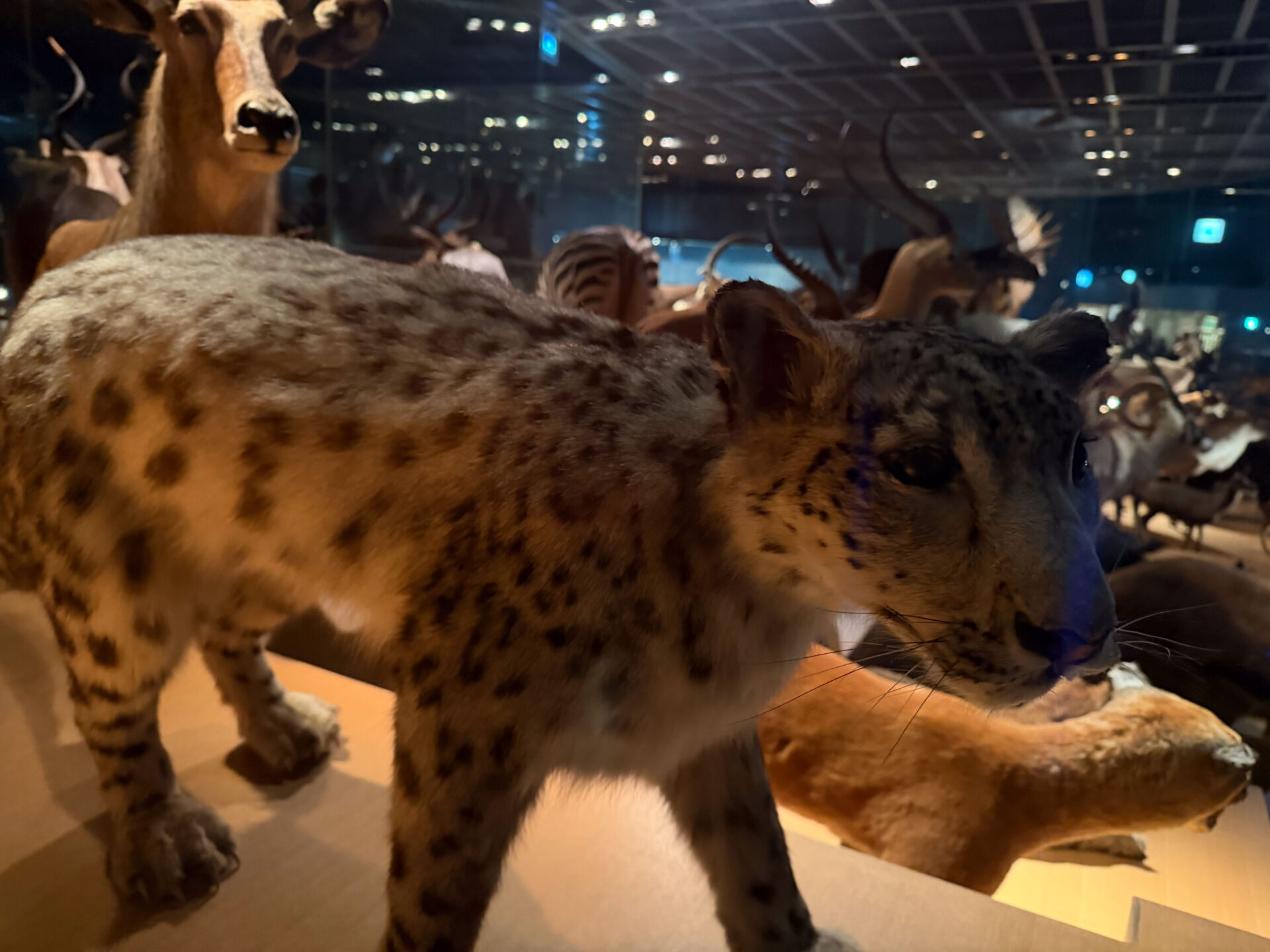 奥へ進むと、そこには驚くほどリアルな動物たちの剥製がずらり。