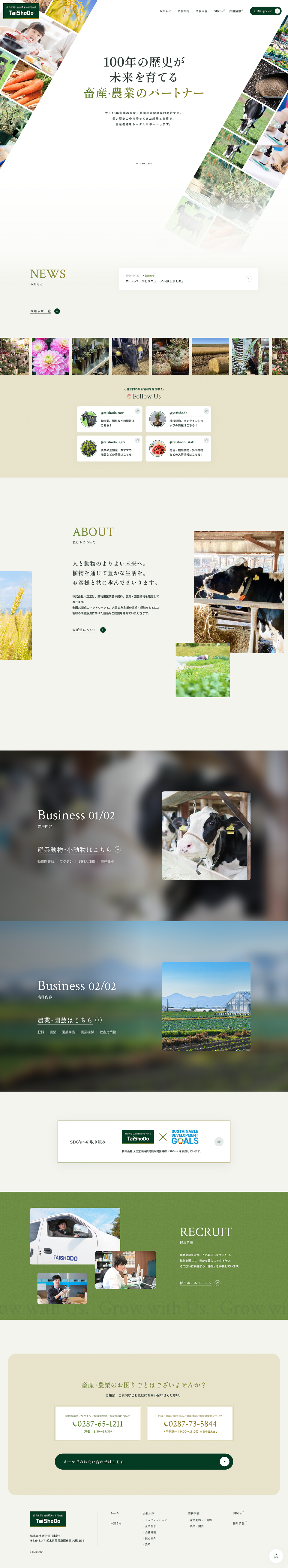 栃木県那須塩原市にある畜産・農園芸資材の専門商社、株式会社大正堂様のコーポレートサイトをリニューアルさせていただきました。