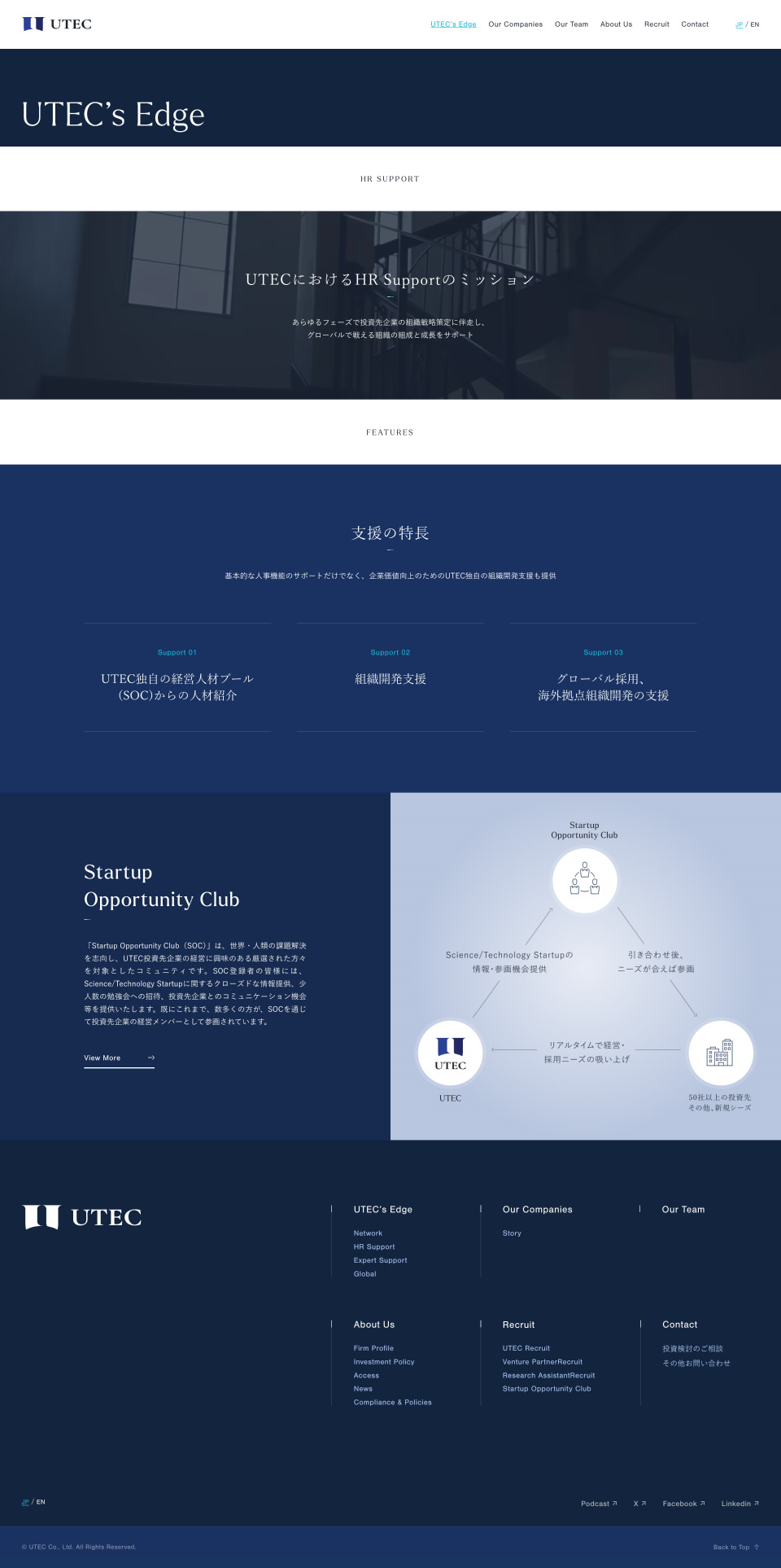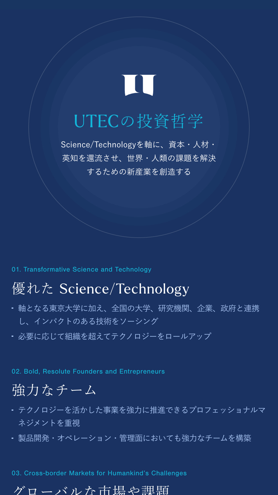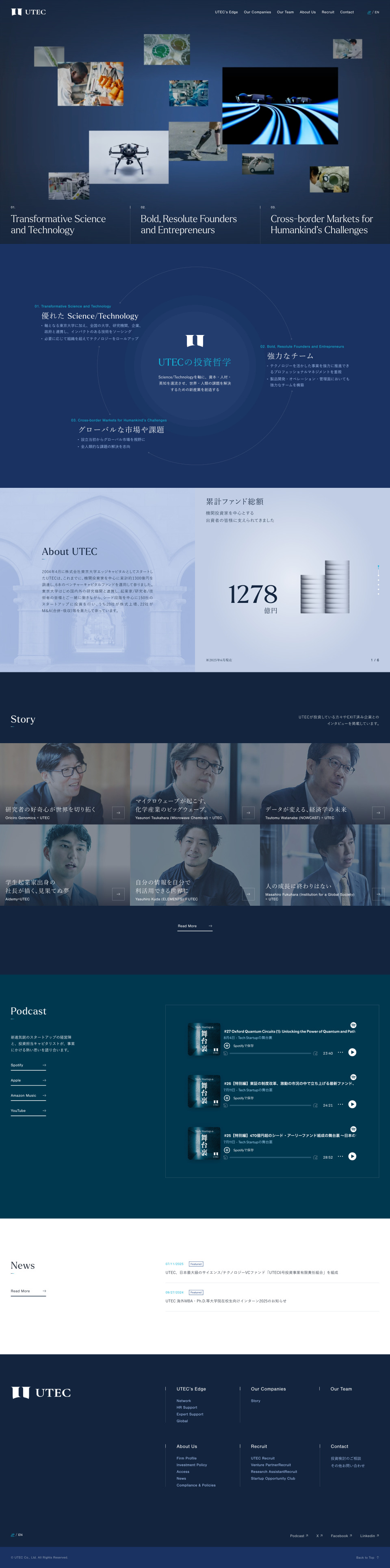 このたび、UTEC-東京大学エッジキャピタルパートナーズ様の新しい旗艦ファンドの設立に合わせた公式企業サイトのリニューアルにあたって、デザイン・実装を担当させていただきました。