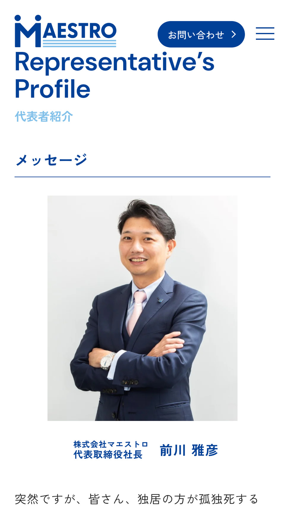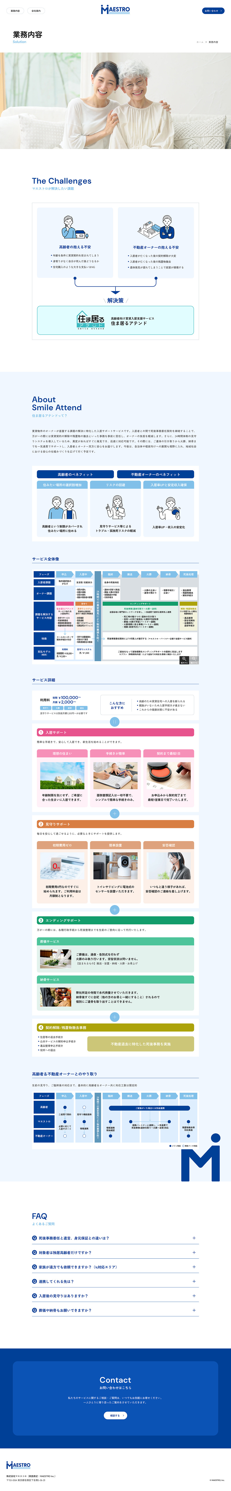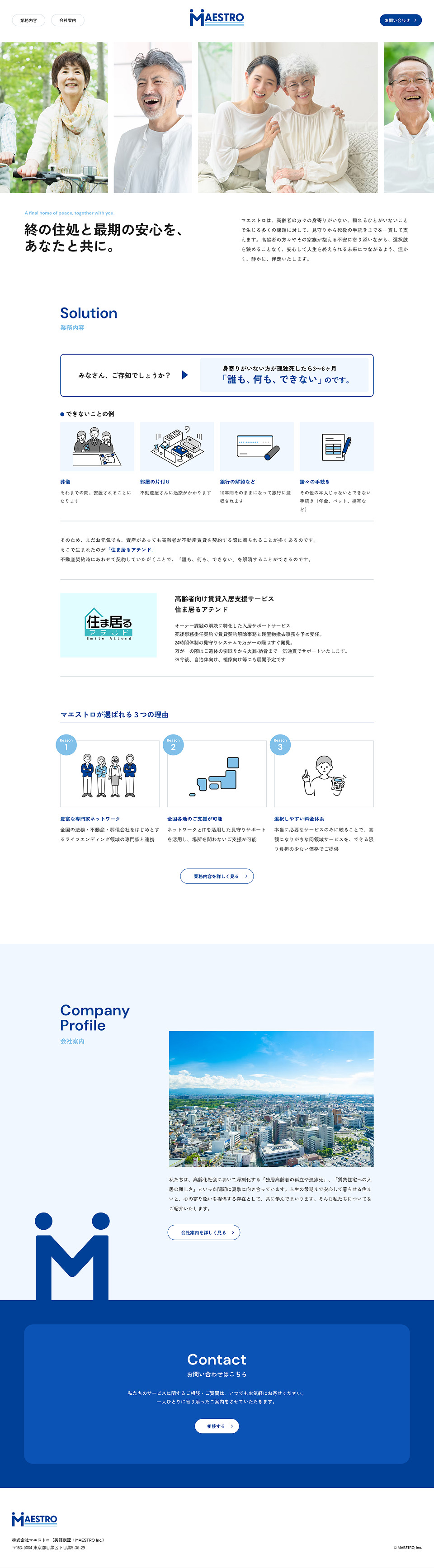 高齢者向けのエンディング事業および孤独死・死後の手続き・社会的サポートなど包括的に支援しているマエストロ様のコーポレートサイトを制作いたしました。