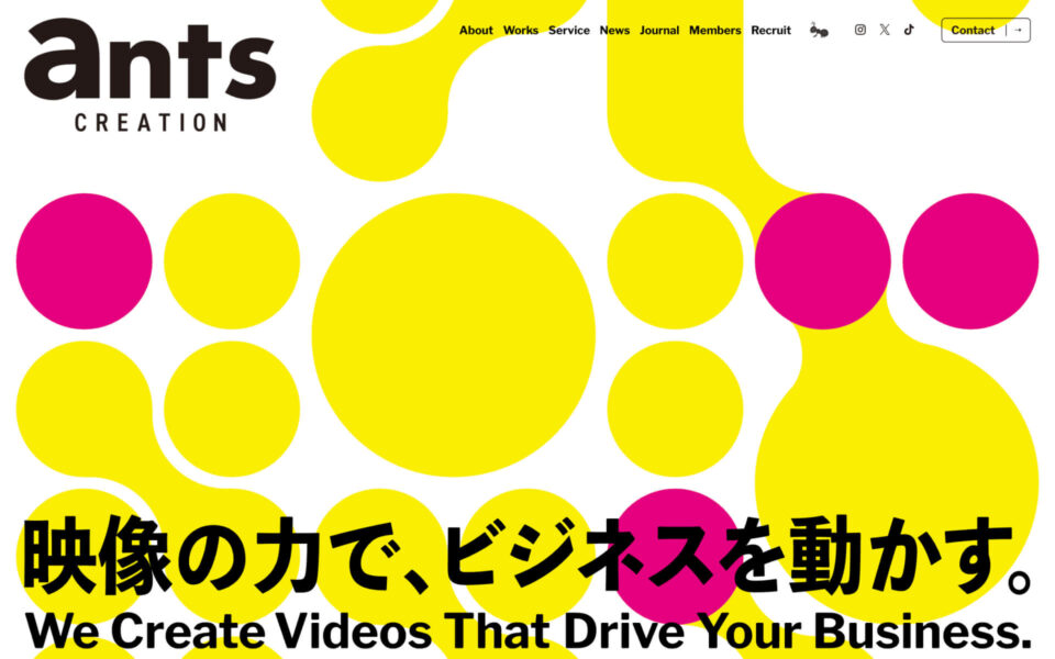 ants様は勤勉さとチームワークを武器に、少数精鋭で、巨象の足元を揺るがすような鋭い一撃を届けることをvisionに掲げ、 TVCM・Web広告・タクシーCM・Graphic・イベント映像・アーティストのミュージックビデオ制作など様々なサービスを展開しております。