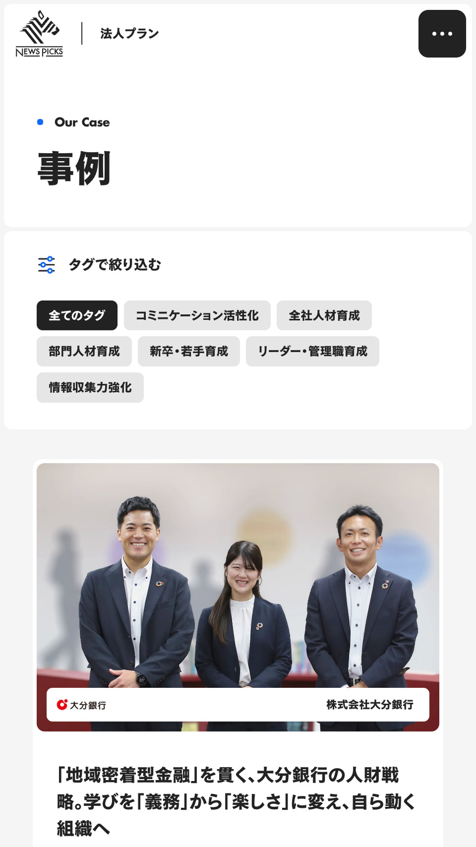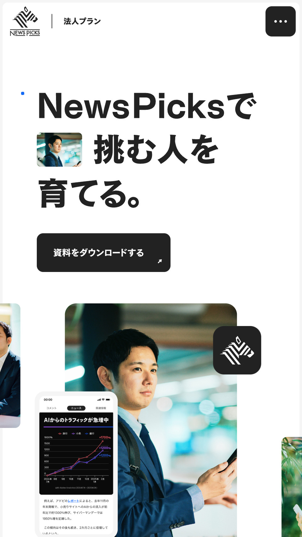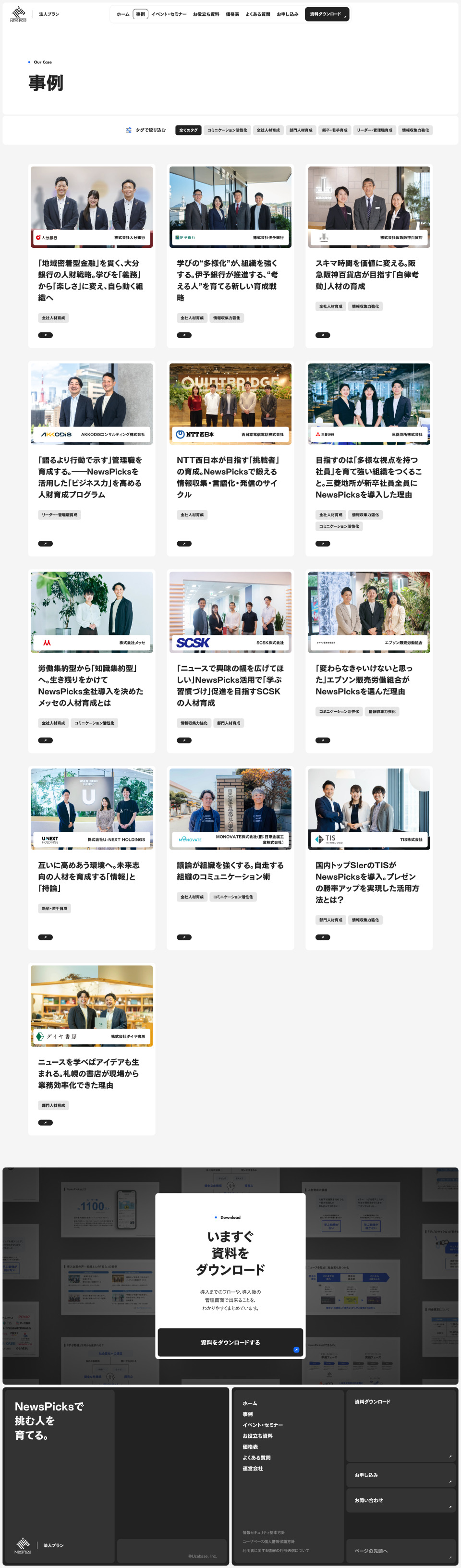 株式会社ユーザベース様が運営する国内最大級のソーシャル経済メディア「NewsPicks」が企業向けに展開しているNewsPicks法人プランのWebサイトの実装を担当いたしました。