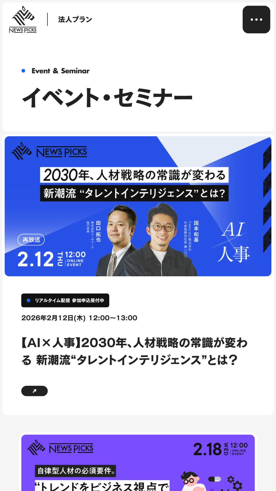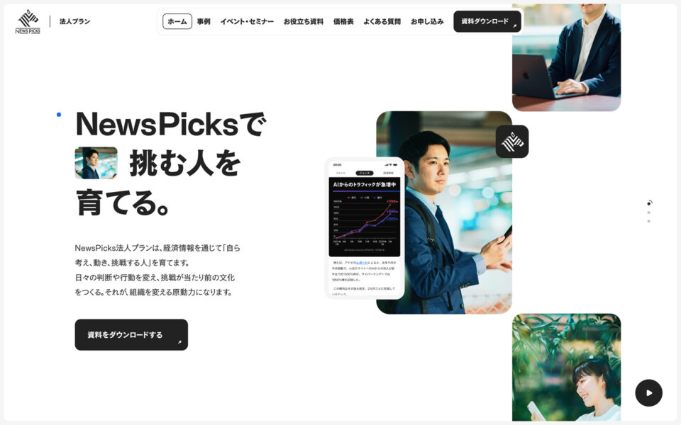 NewsPicks法人プランは、「自律型人材の育成」を目的としたビジネスパーソンに必要な経済情報や学習コンテンツを提供するサービスです。